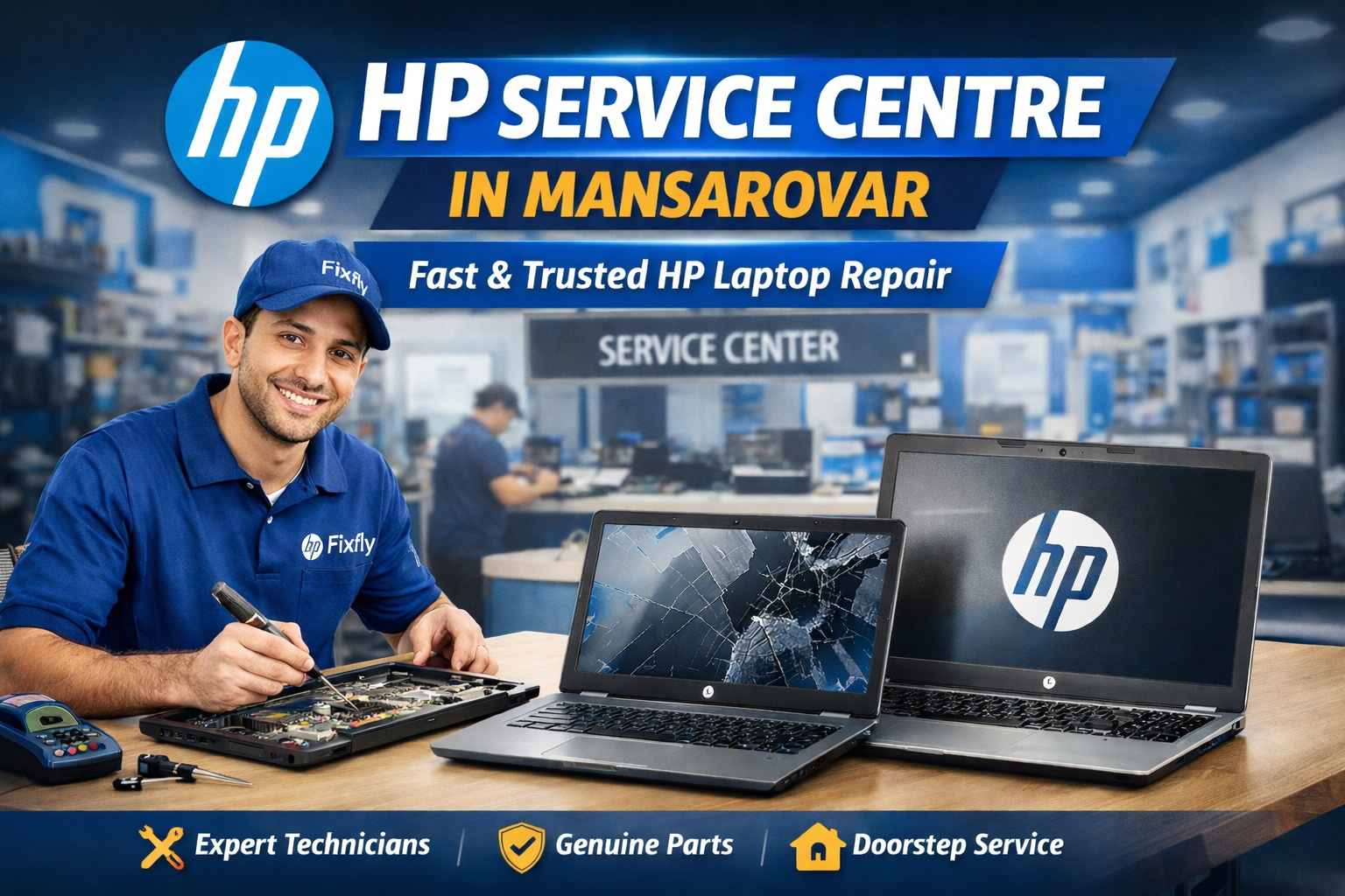 HP Service Centre in Mansarovar – Fast & Trusted HP Laptop Repair by Fixfly Fixfly also provides doorstep repair service in selected areas. If you cannot visit the HP service centre in Mansarovar, you can book a service and our technician will visit your location. This makes it convenient for working professionals and students.